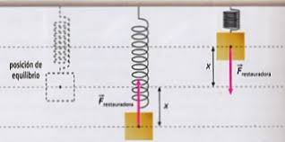 Si un cuerpo de masa m, se suspende de un resorte y se estira hacia abajo una longitud Dx, el muelle como reacción ejerce una fuerza restauradora que tiende volver la masa a su posición de equilibrio.